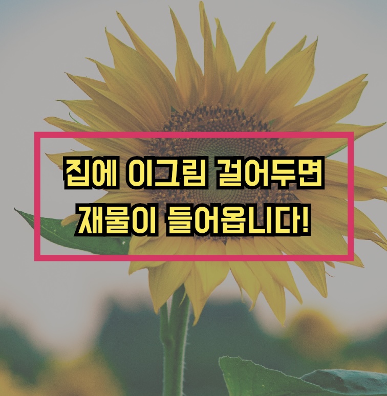 일반적으로 재물복과 금전운을 부르는 풍수 인테리어 그림으로 대표적인 것이 바로 해바라기입니다. 해바라기의 노란빛이 금을 상징한다고 하는데요. 금은 곧 재물운이나 금전운 등을 상징합니다. 해바라기 그림은 특히나 노란색이 진하고 활짝 피어 있는 것이 좋다고 하네요.
